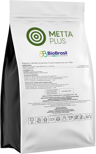 Metta Plus possui alta carga de conídios por dose, garantindo maior impacto em infestações elevadas e proporcionando controle mais rápido. Sua formulação favorece boa estabilidade e persistência no ambiente, ampliando a área de ação e aumentando a eficiência do manejo. O produto também contribui para estratégias de manejo integrado, oferecendo segurança e desempenho superior para sistemas que buscam maior sustentabilidade.